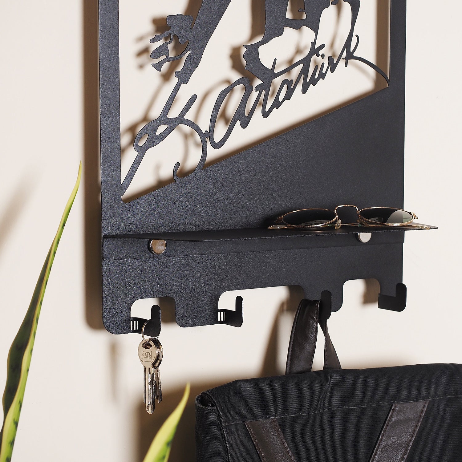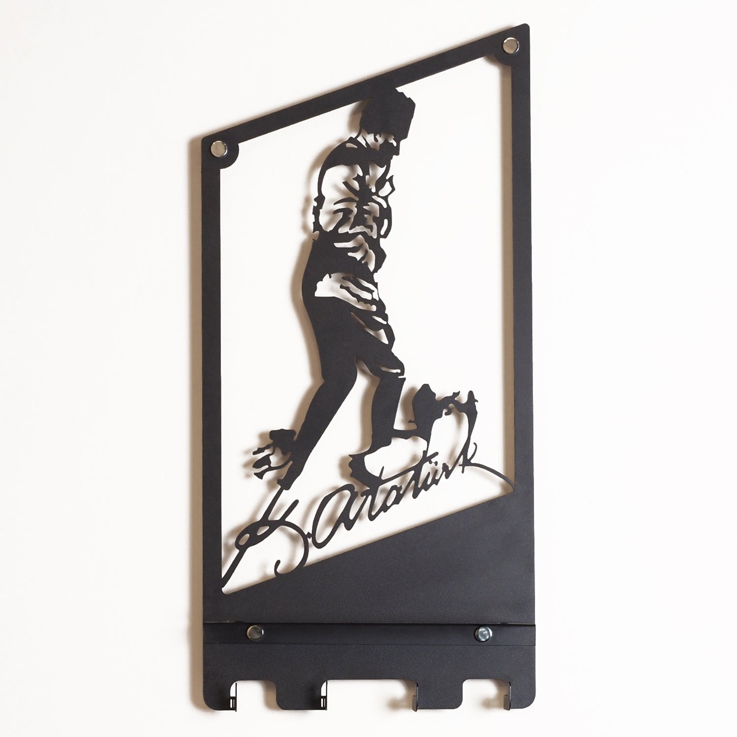 Atatürk silüeti ve imzasıyla tasarlanan bu metal askılık, hem dekoratif hem de işlevsel bir kullanım sunar. Anahtar, çanta gibi eşyalar için pratik bir çözüm sağlarken, bulunduğu ortama anlamlı bir şıklık katar. Gururla sergileyin, düzeni şıklıkla birleştirin.