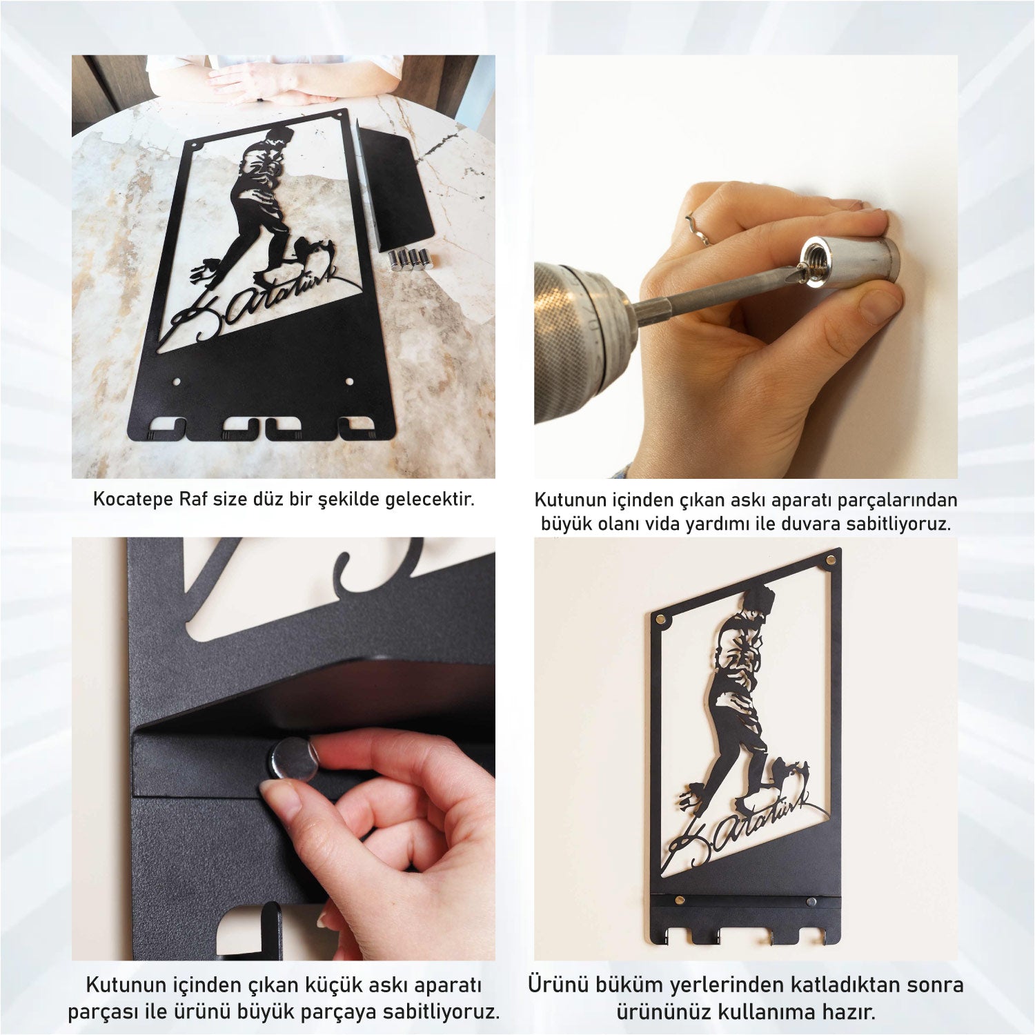 - Metal Kocatepe Raf ve Askılığımız size düz bir şekilde gelecektir. Ürün görsellerinde yer alan asma görseli ile duvarınıza sabitleyebilirsiniz. (Kurulum için gerekli olan parçalar kutudan çıkmaktadır).