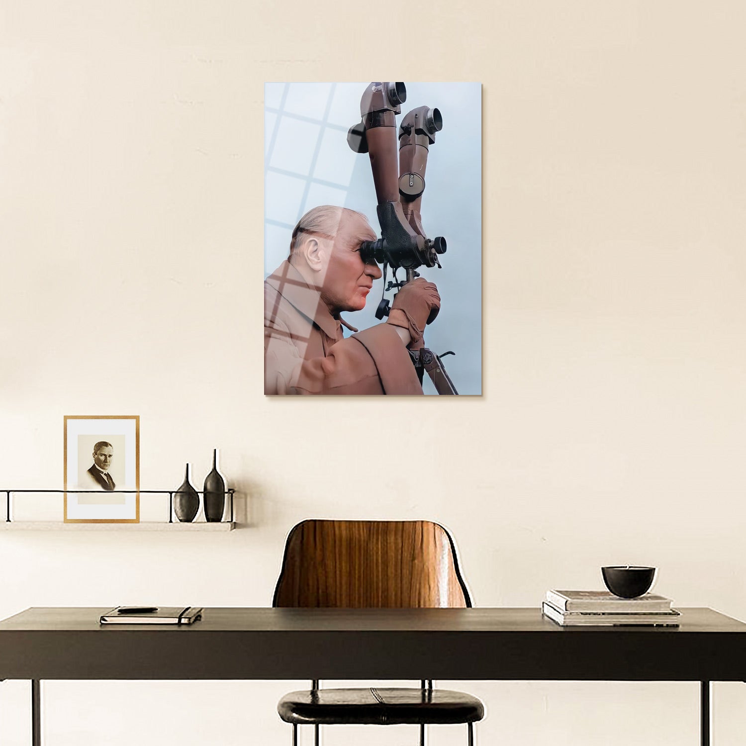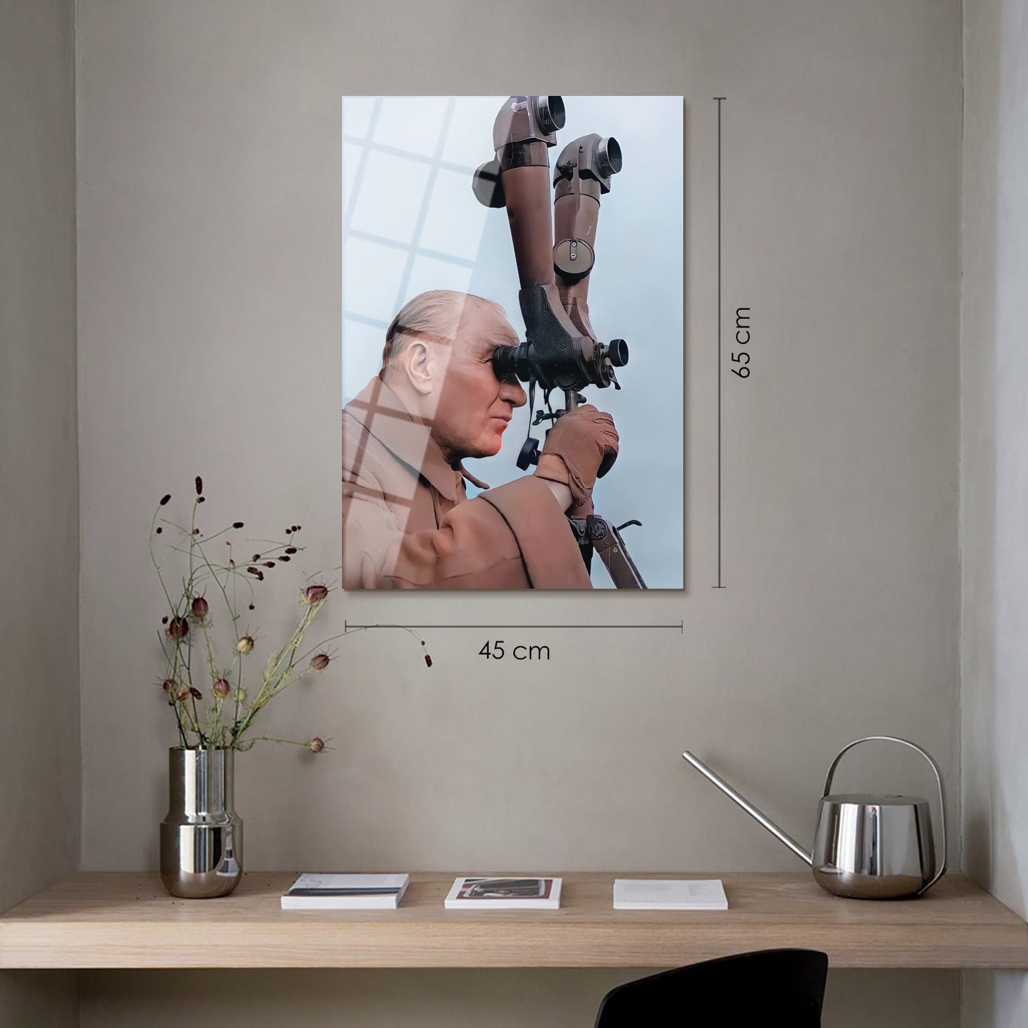 Atatürk Gözetleme Yaparken Cam Tablo - ATC037