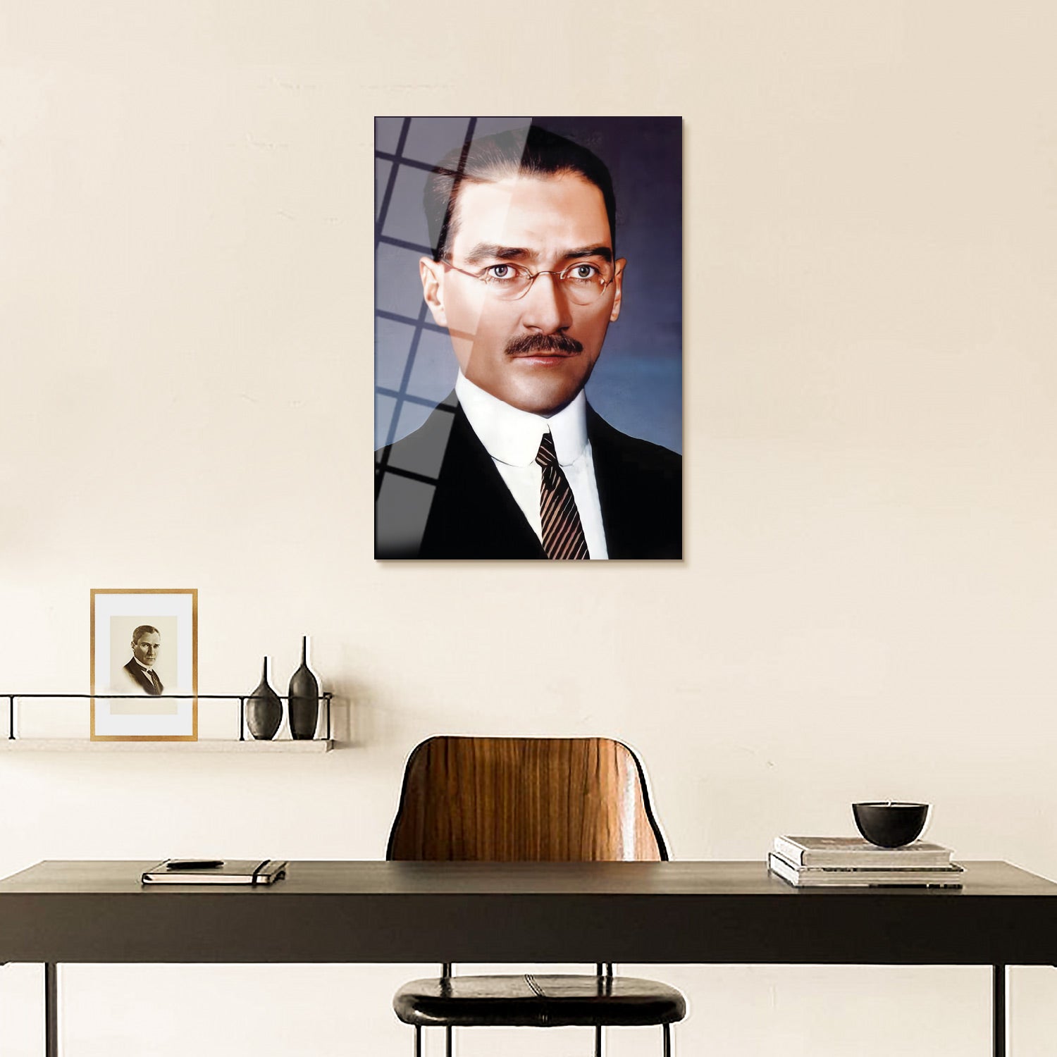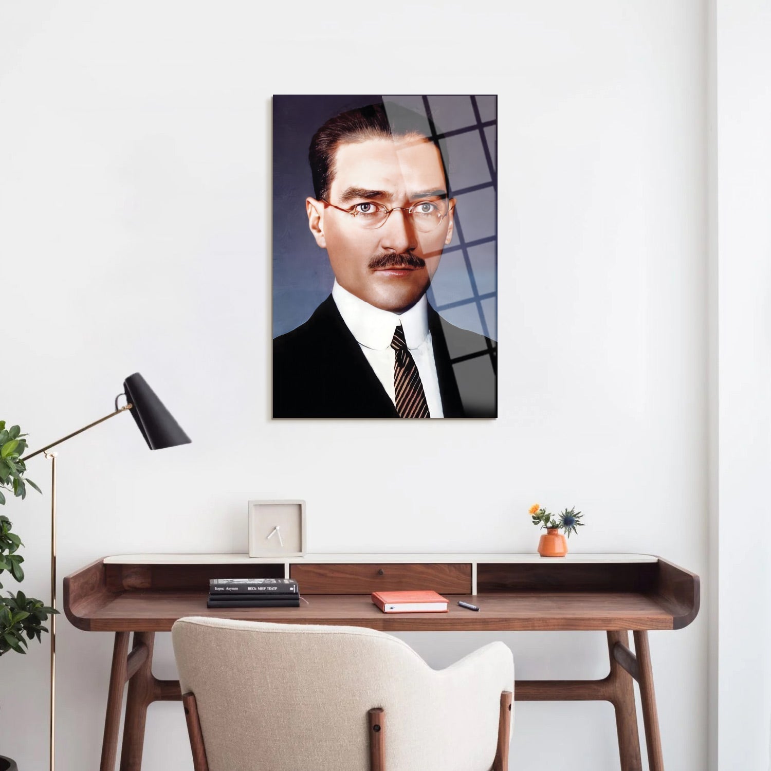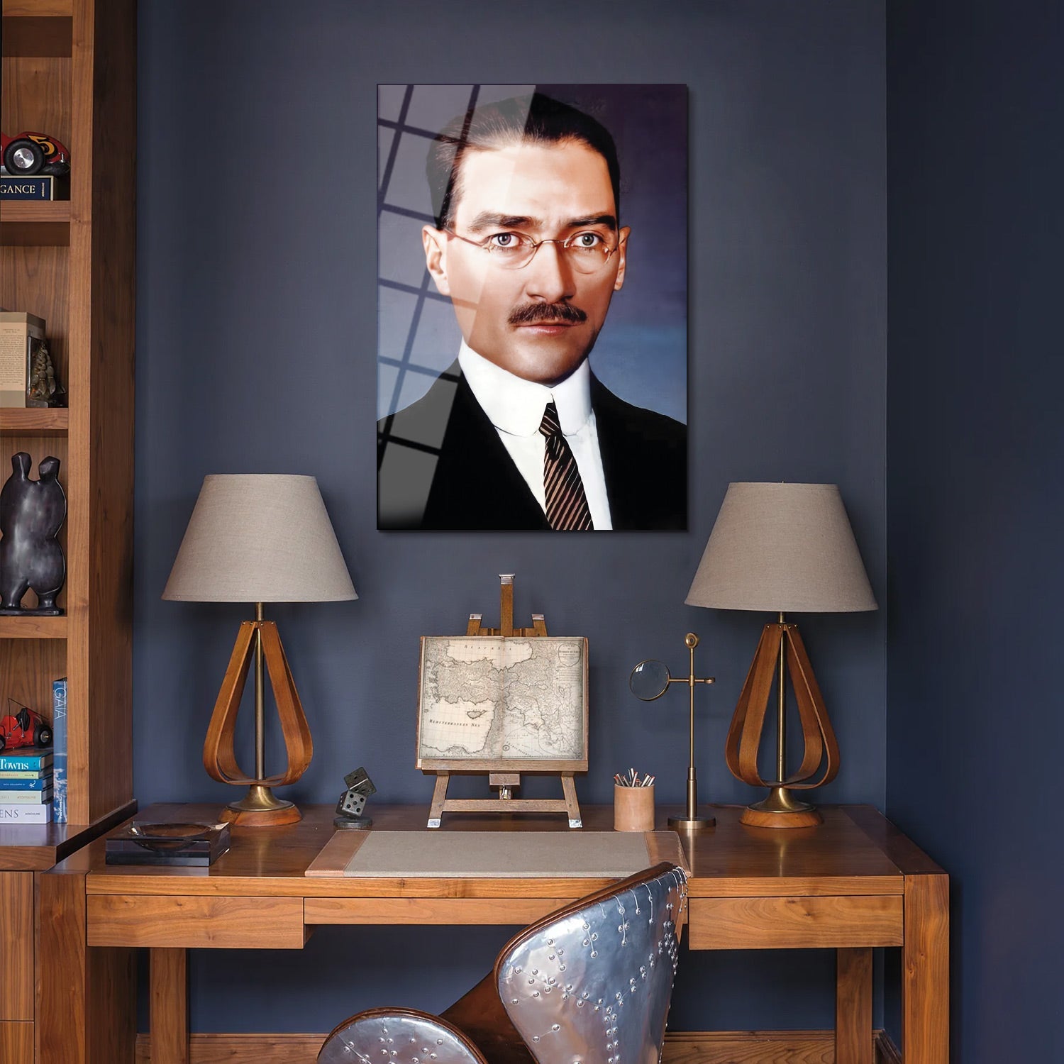 Atatürk henüz Kurtuluş Savaşı yıllarında. 1921 kışında Ankara’ya gelen Amerikalı bir gazeteci, Atatürk’ün çekilen ilk gözlüklü bu fotoğrafı için şöyle yazar: “Onu gözlükleriyle ve kalpaksız görün profesöre benzer bir edası var. Yüzünde idealist (hayalperest) bir şey var, özellikle gözlerinde, ama hayallerini gerçekleştiren bir hayalpereste ait.”