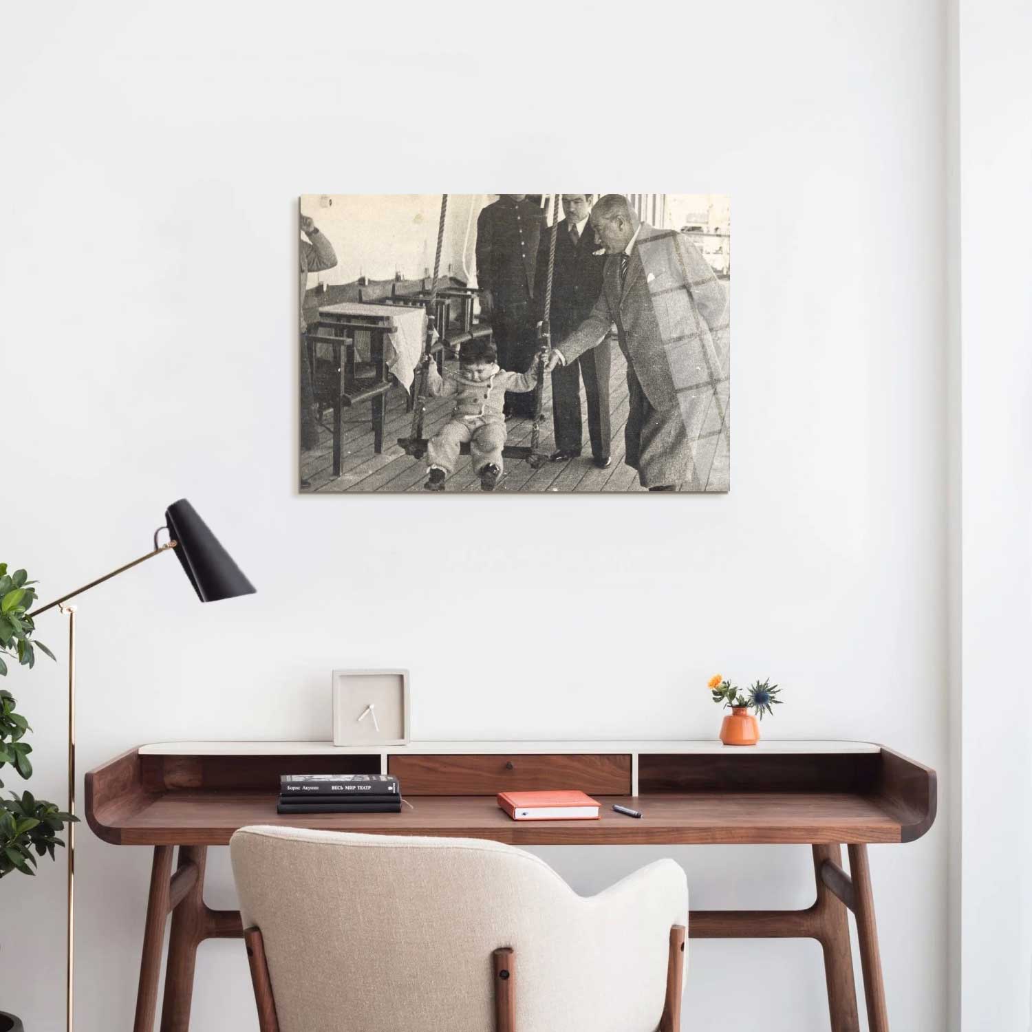 Mustafa Kemal, Ege Vapuru’nda manevi kızı Ülkü Adatepe'yi salıncakta sallarken. (17 Şubat 1935)