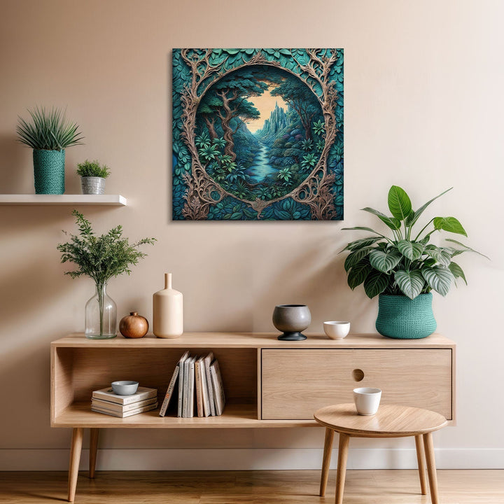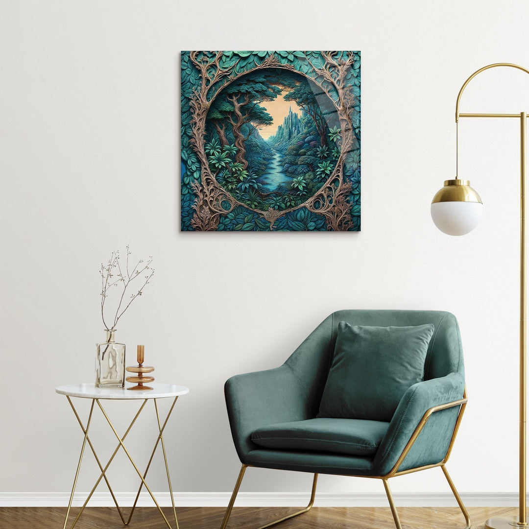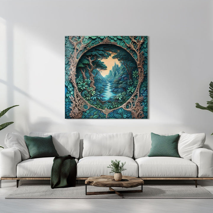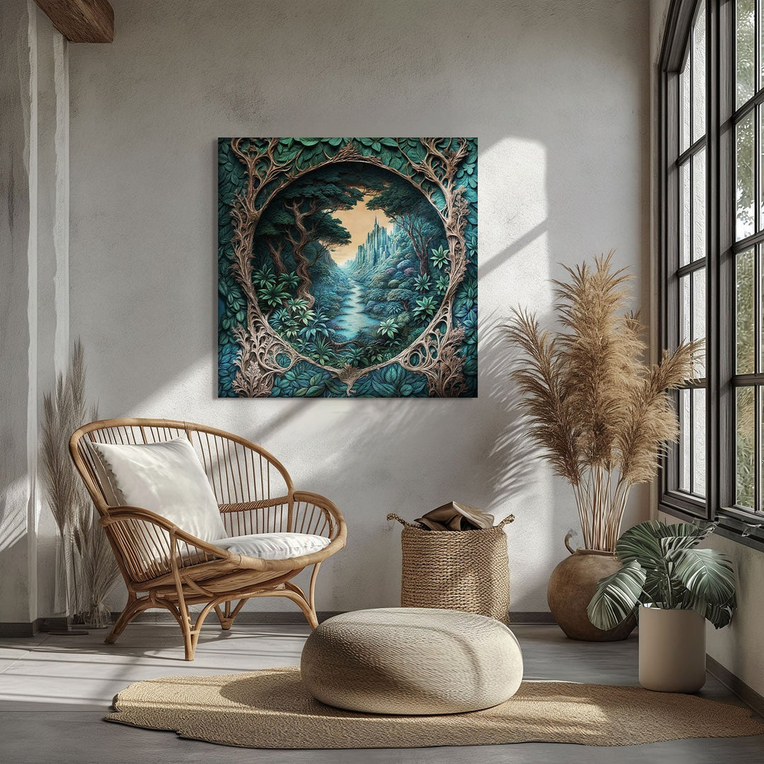 In a green valley, a fairytale structure hides in the heart of nature, Bring this tranquil scene into your home and add a magical touch to your life,