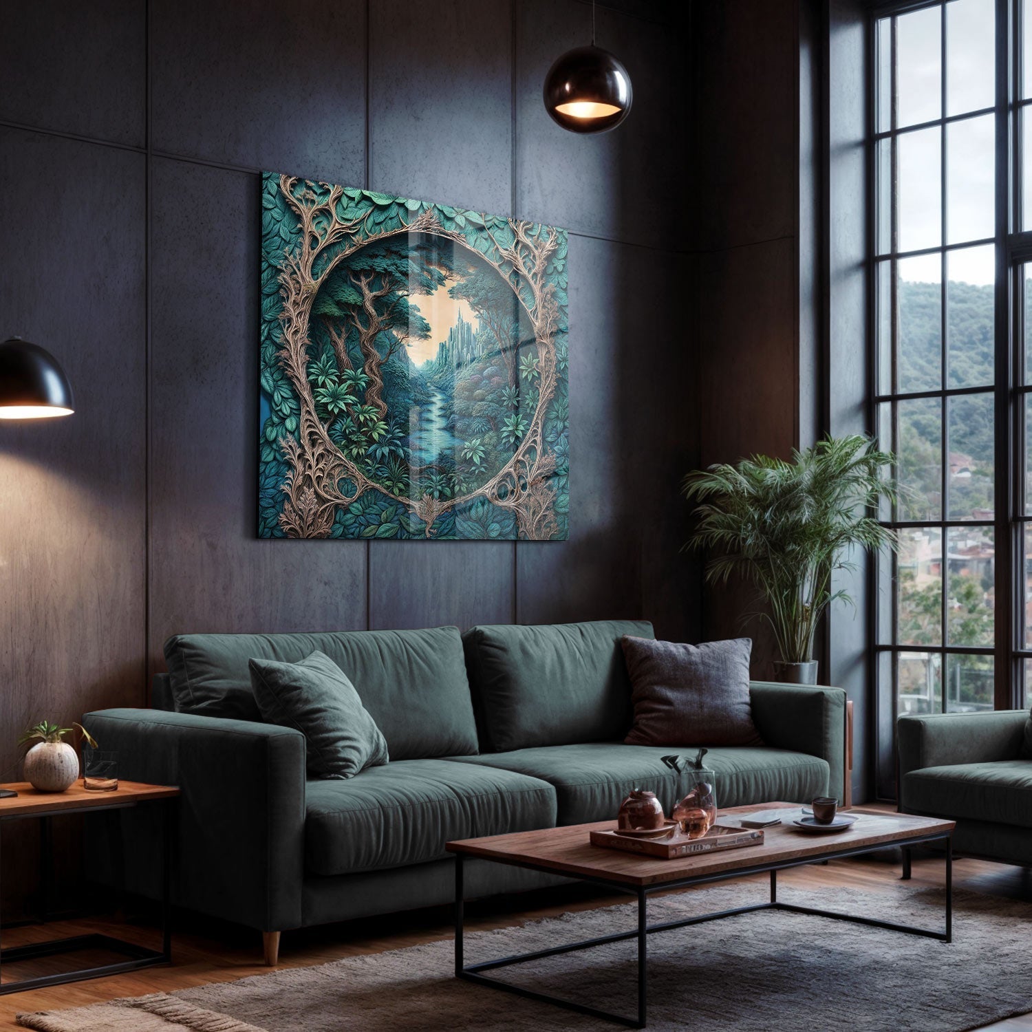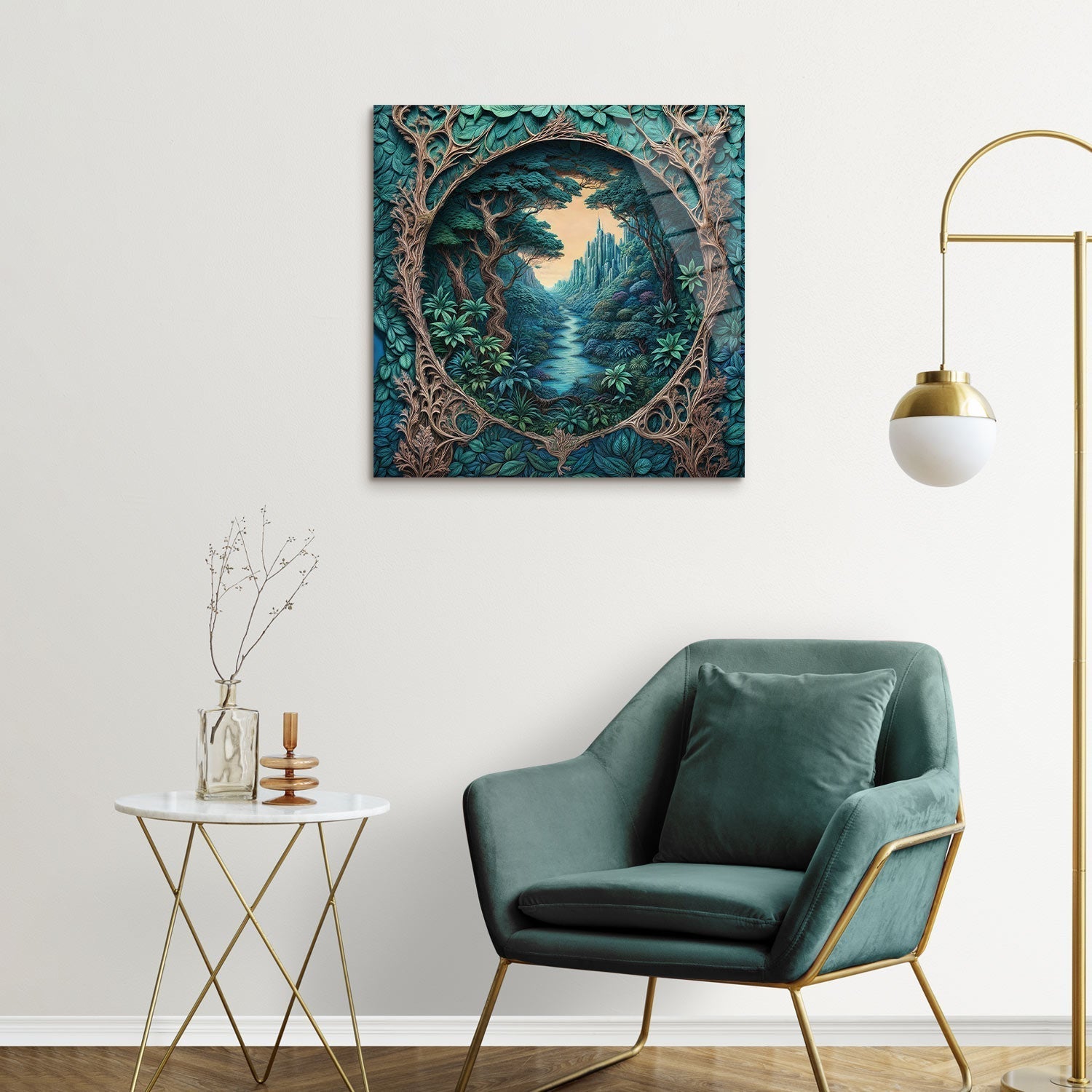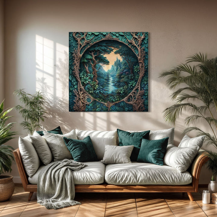 In a green valley, a fairytale structure hides in the heart of nature, Bring this tranquil scene into your home and add a magical touch to your life,