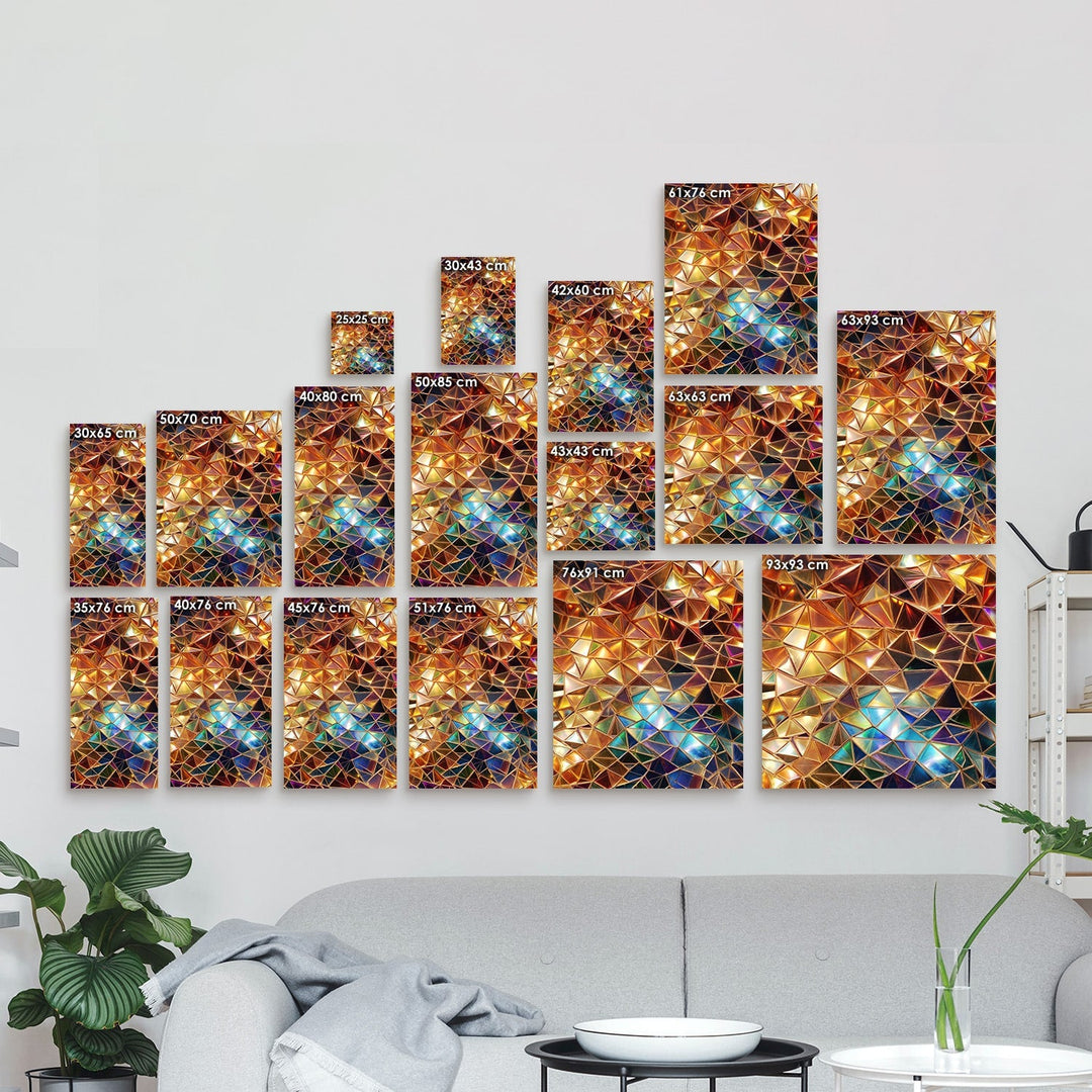 We bring you this stunning seascape of golden and bronze tones, a mosaic sea presented in an infinite geometric play of light refractions and color reflections,