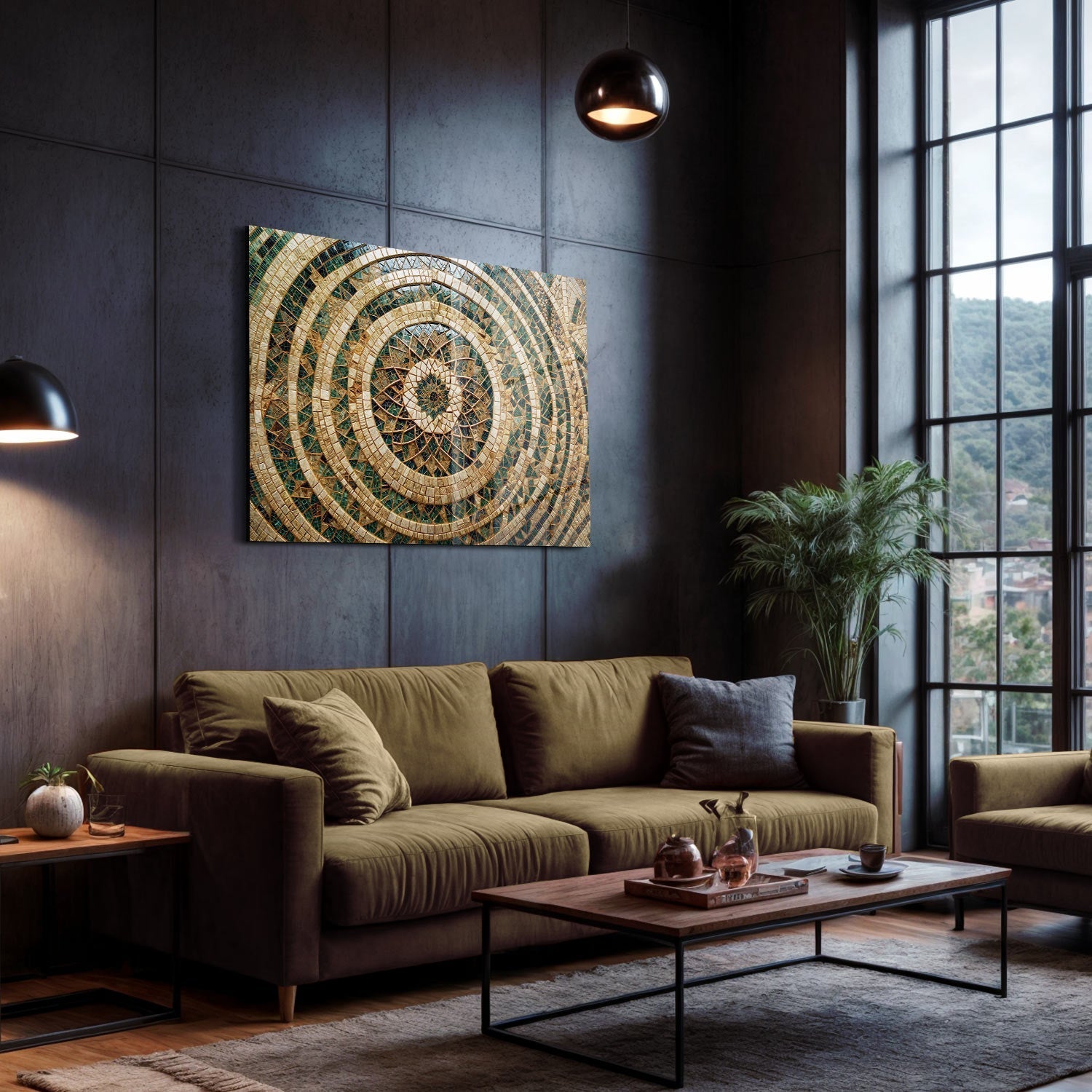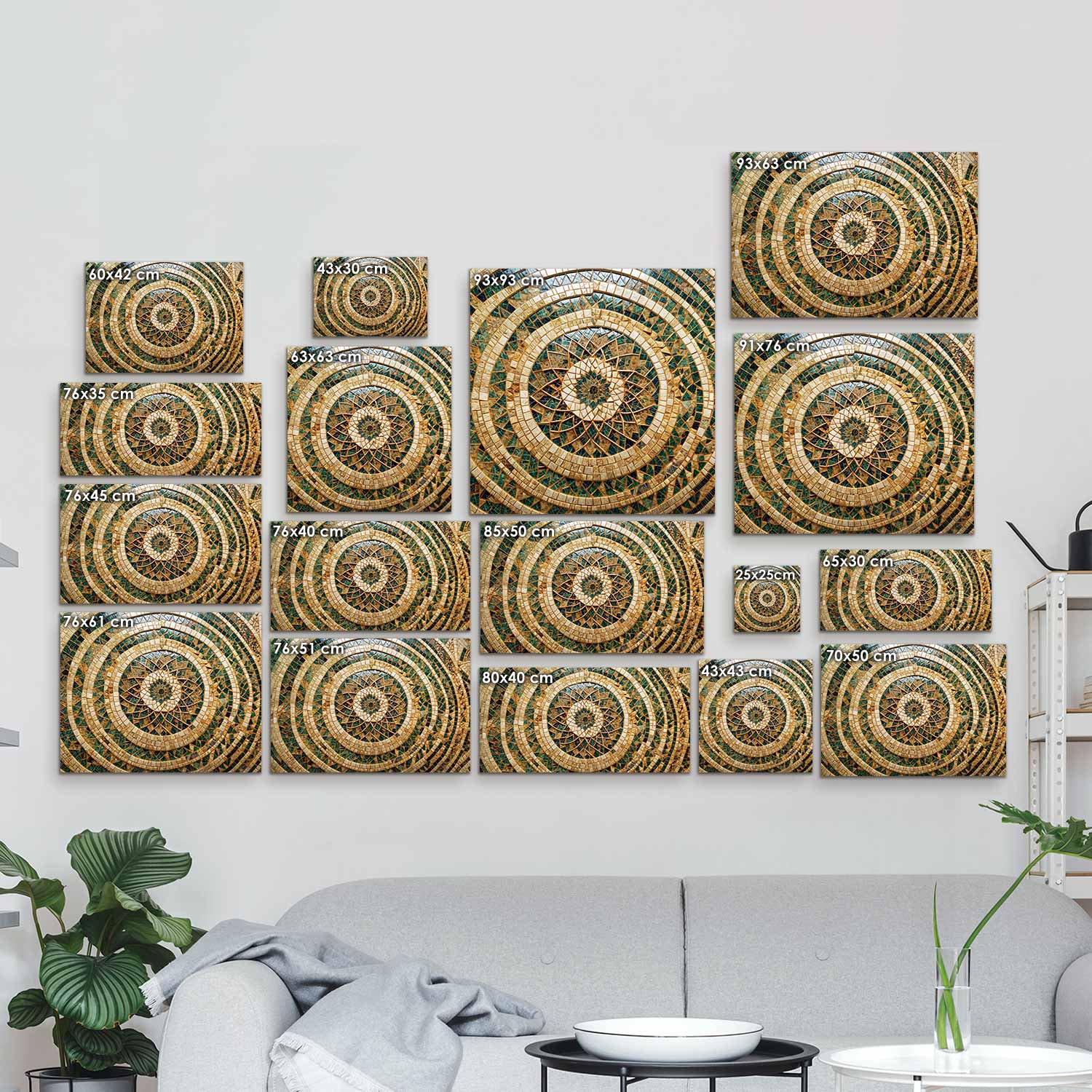 This piece, combining green and gold hues in a mosaic pattern, offers a captivating brilliance, Bring this elegant artwork into your home and enjoy its radiance every day,