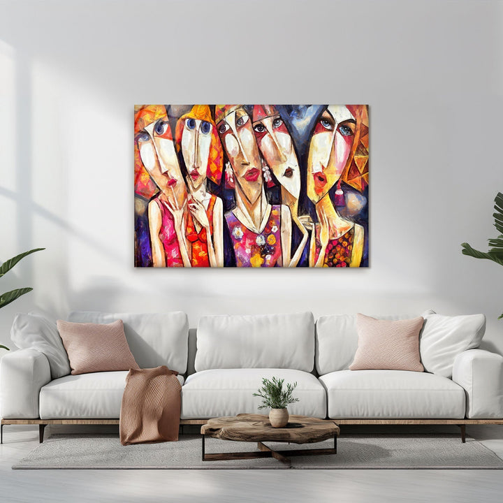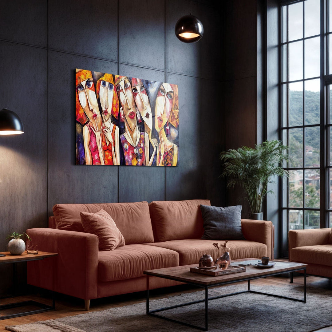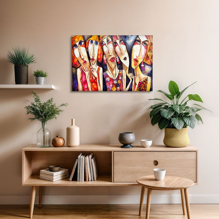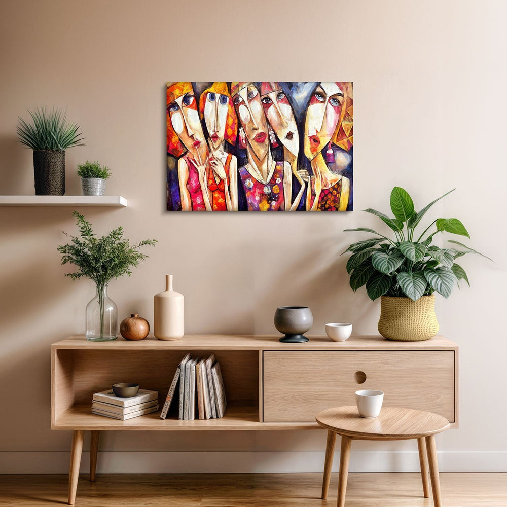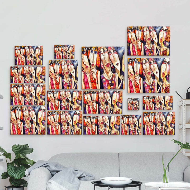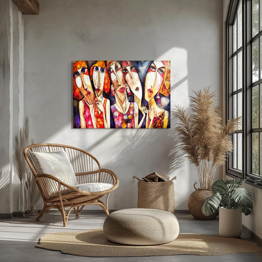 Abstract and distinct facial expressions reflect a discordant harmony of complex emotions, This piece invites the viewer on a contemplative journey into the depths of feelings,
